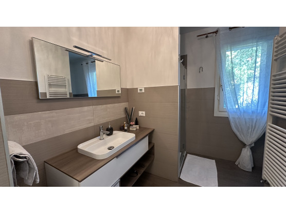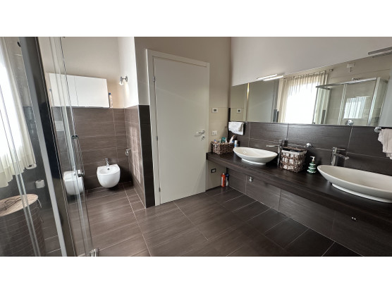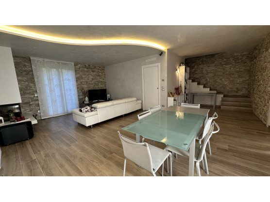 Villa bifamiliare del 2016 arredata. La zona giorno molto ariosa e funzionale si divide tra cucina abitabile e soggiorno- sala da pranzo con caminetto. La scala a vista porta al piano superiore completamente travato a vista dove troviamo 3 ampie e comode camere, 1 matrimoniale e 2 doppie. Al piano interrato una grande zona a taverna completamente attrezzata può accogliere grandi convivialità, oltre a spazi lavoro intelligenti e pratici, come 2 lavanderie, 1 stanza multiuso, un garage fuori terra, doppio in lunghezza e in altezza (possibilità di soppalcarlo) Doppio ingresso pedonale, un ingresso carraio, 4 posti auto complessivi (2 interni coperti, 2 scoperti in proprietà privata). 2 i bagni, uno per piano, entrambi con doccia. Il giardino privato, recintato e schermato da siepi circondano tre lati della villetta.